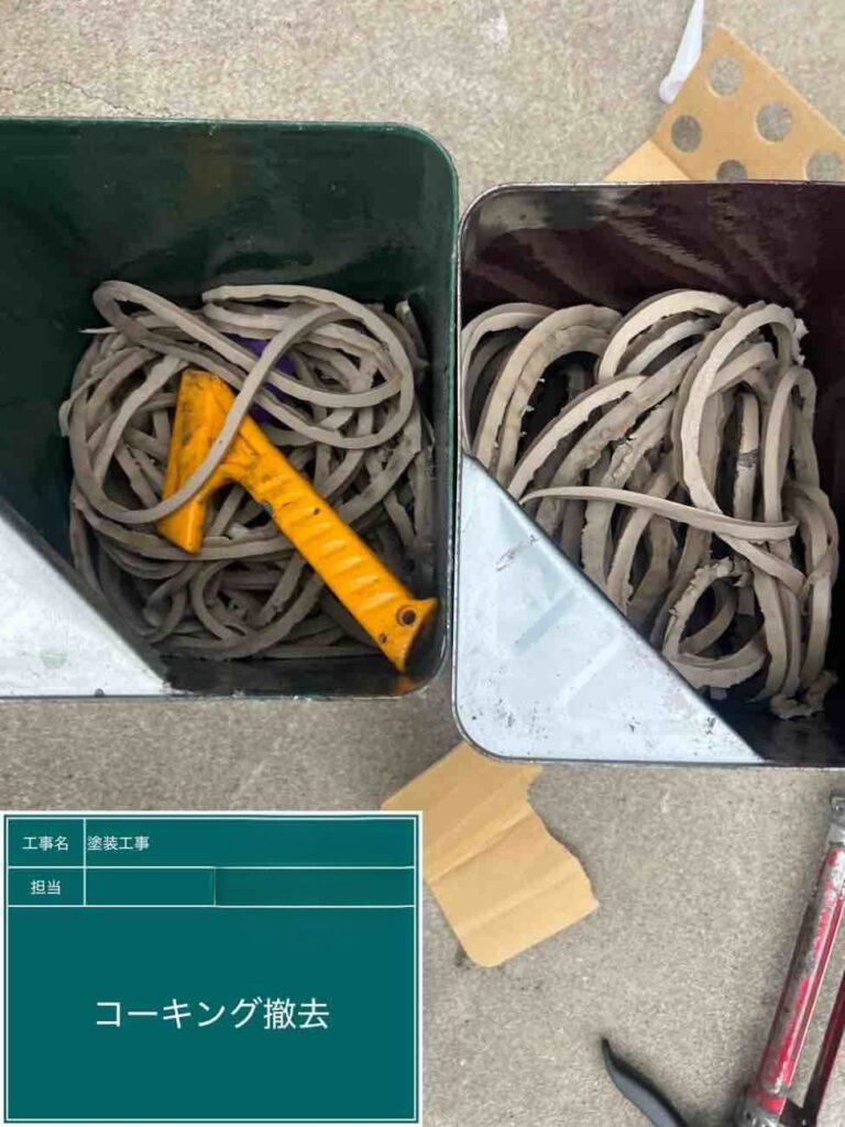 洗浄後コーキングを撤去していきます。