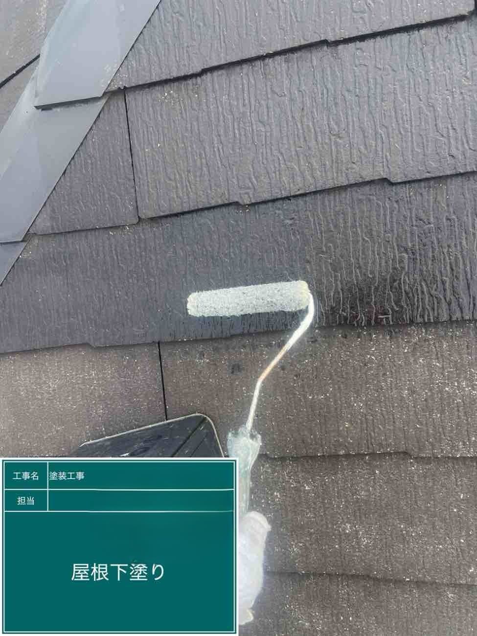 屋根の下塗りになります。しかり屋根材に吸わせていきます!