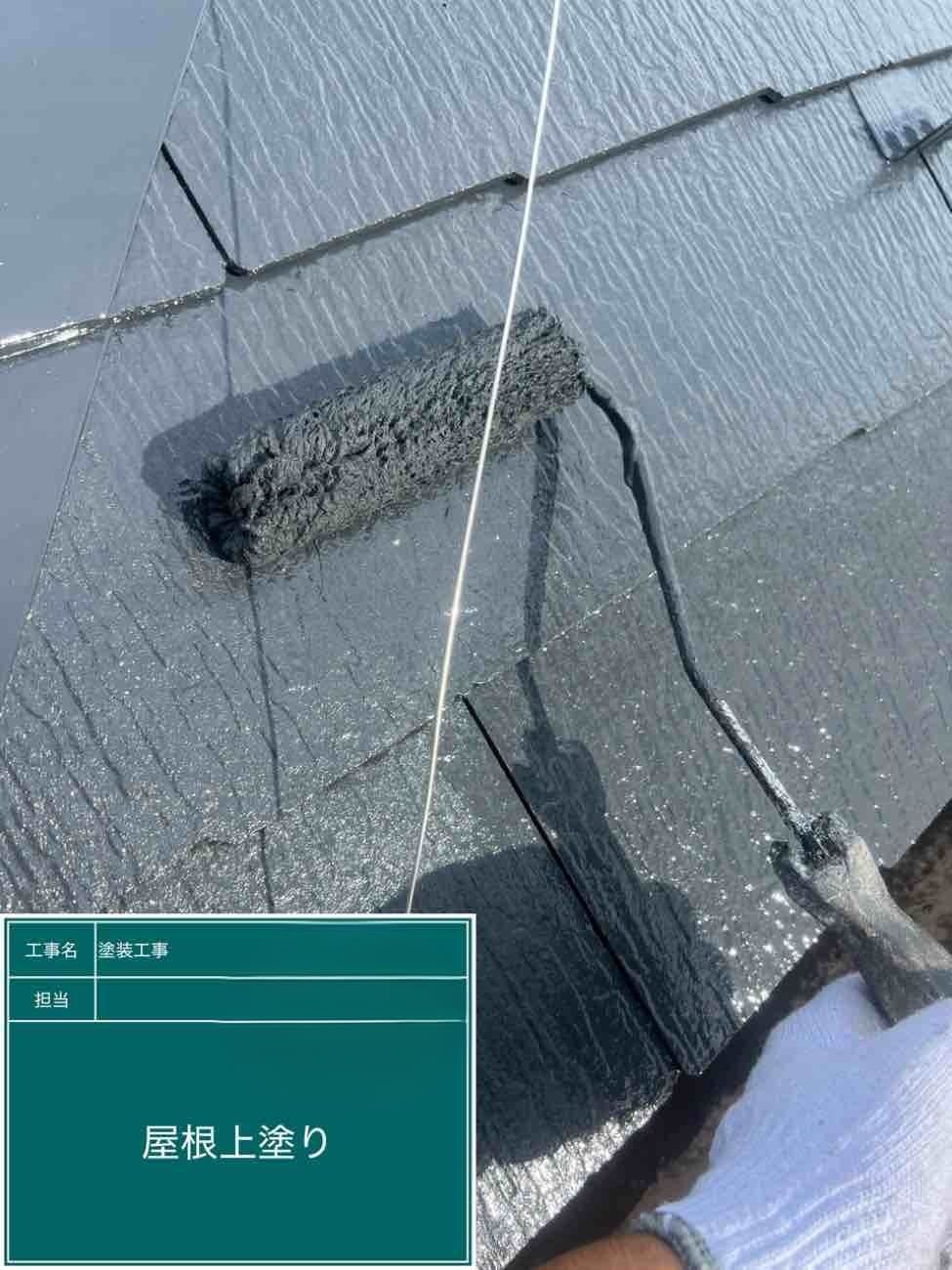 屋根の上塗りになります。綺麗に仕上げていきます!
