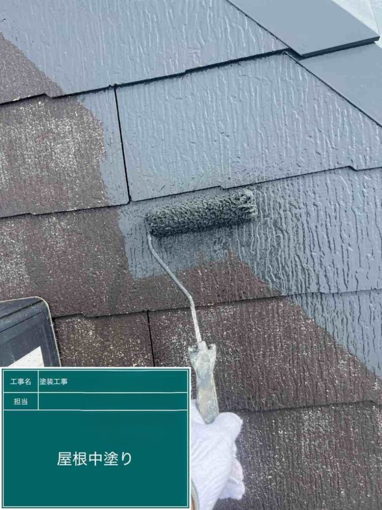 屋根の中塗りになります。色がついていくのが気持ちがいいですね!