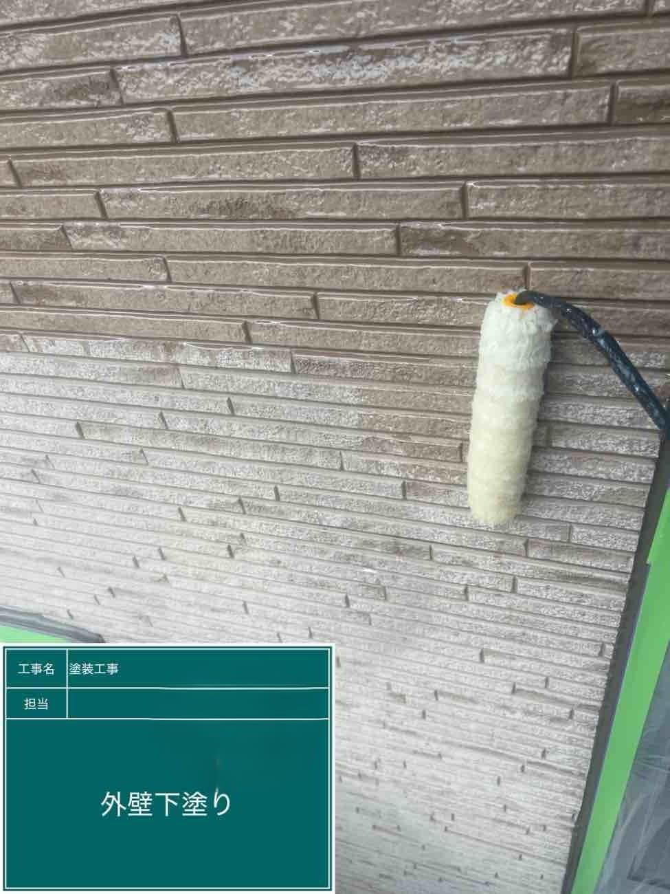 外壁の下塗り作業になります。下地処理が一番大事な作業になります!