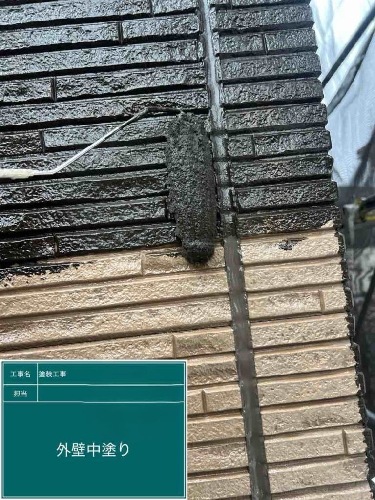 外壁の中塗りになります。ガラッと雰囲気が変わります!