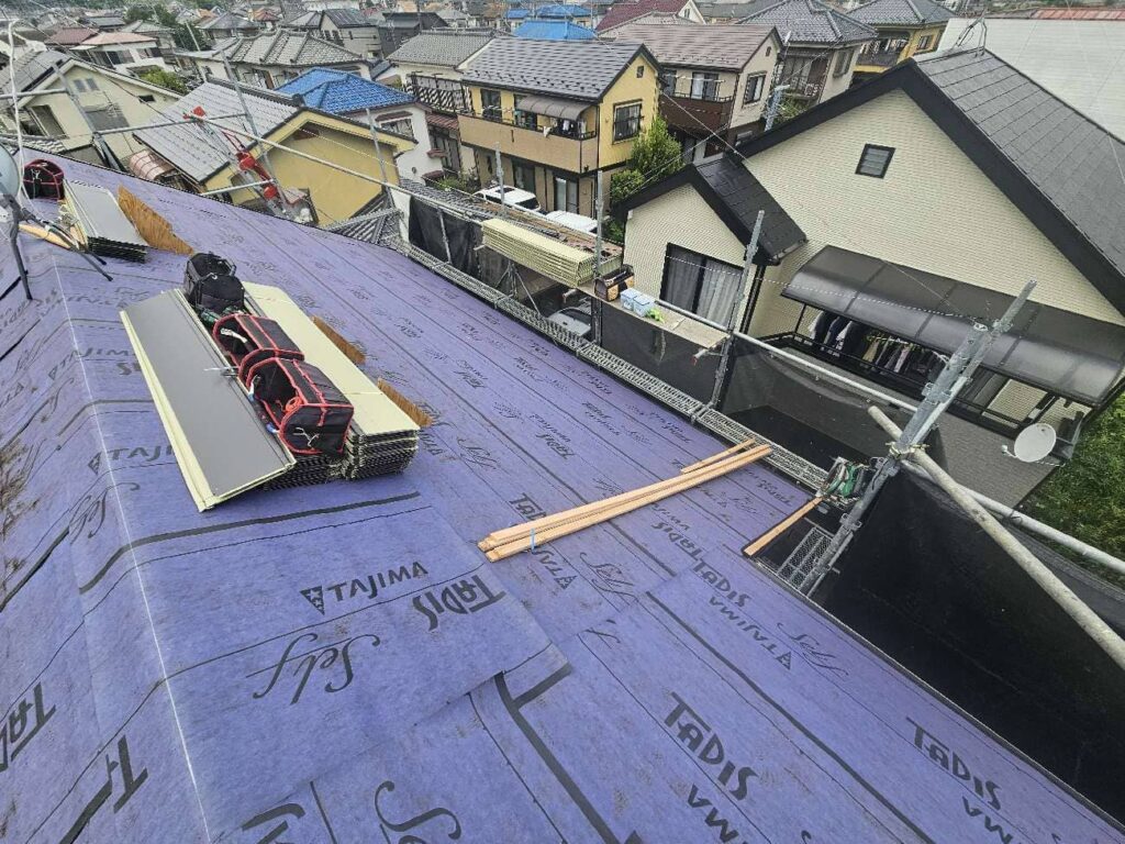 • 屋根工事のルーフィング設置後です。雨漏り対策ばっちり!