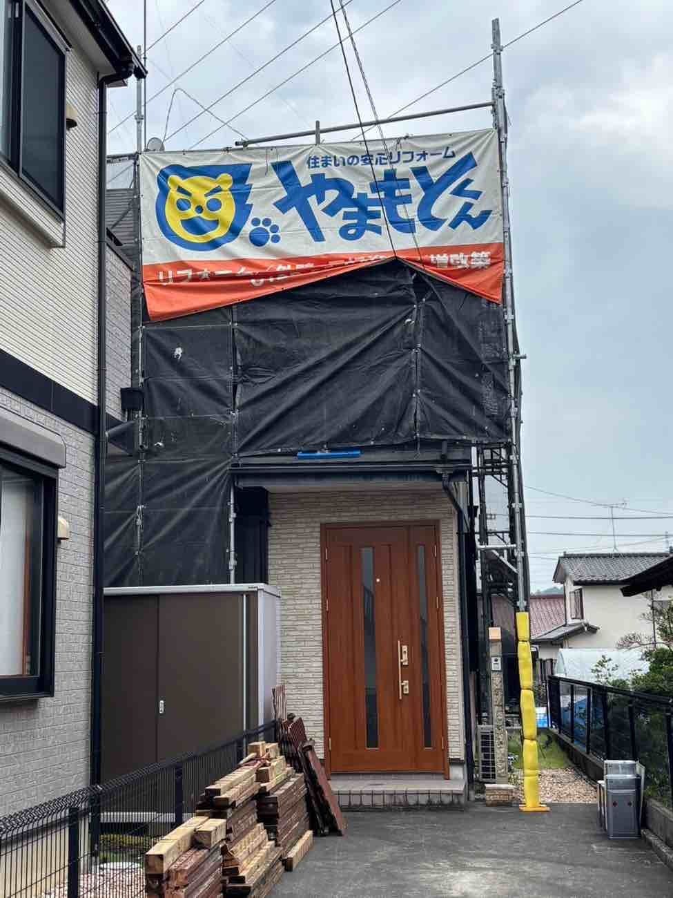 • 仮設足場設置完了!安全第一!毎日ご苦労様です!