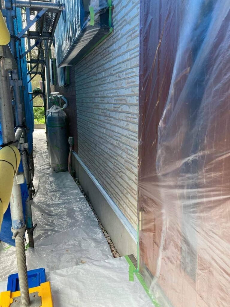 • 外壁の上塗りです。2色使っているので仕上がりが楽しみです!