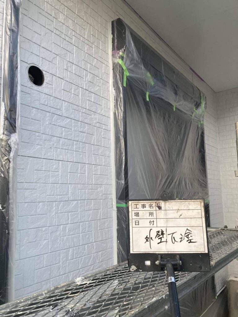 • 外壁の下塗りになります。たっぷり塗っていきます!
