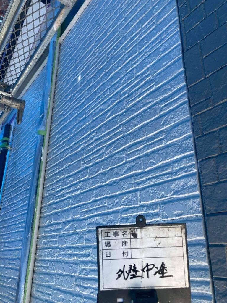 • 外壁の中塗りになります。色が入ると雰囲気もガラッと変わりますね!
