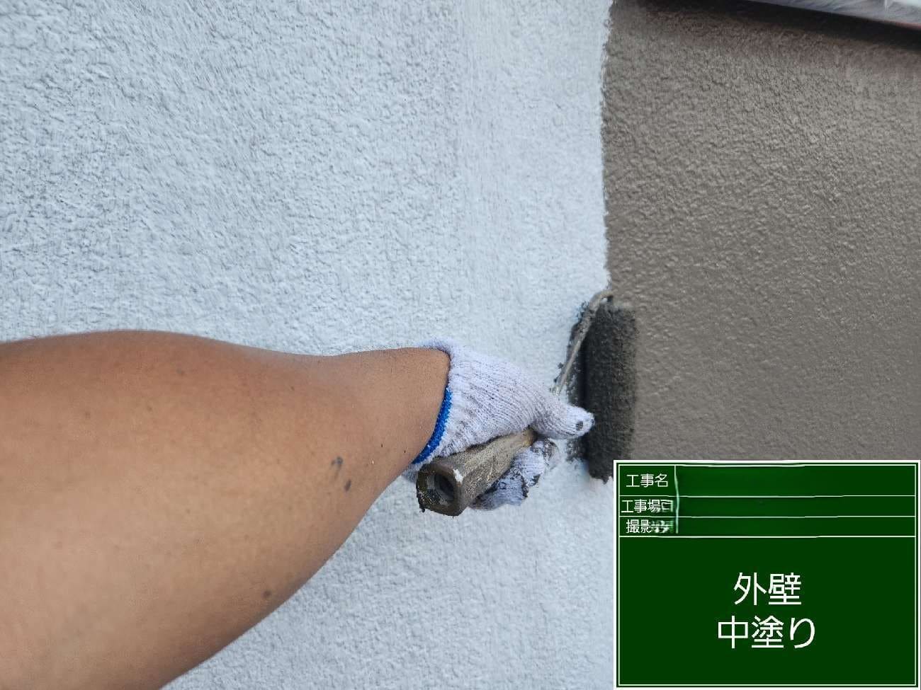 外壁の中塗りになります。少し色がついていきます。