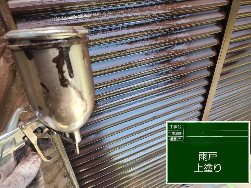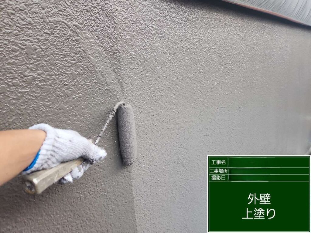 外壁上塗りになります。塗り重ねてばっちり色が入っていい感じ!