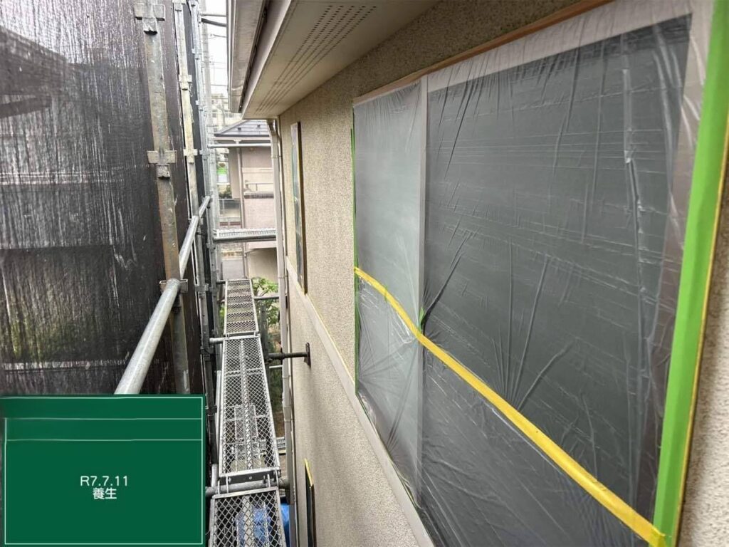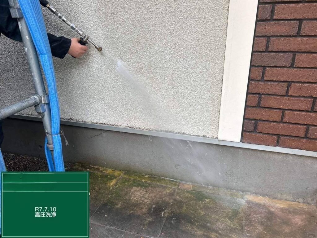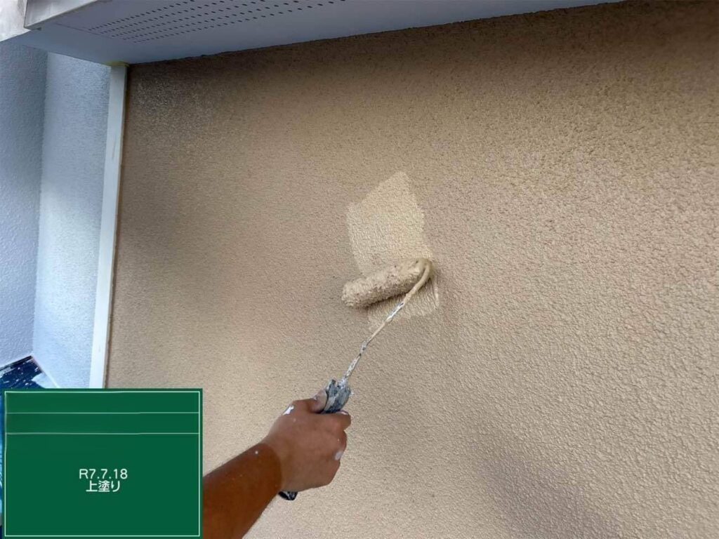 外壁メインの上塗りになります。清潔感のあるお色になりました!