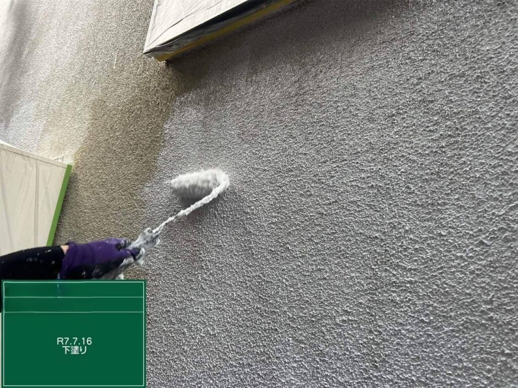 外壁の下塗りになります。沢山吸うタイプの外壁なのでたっぷり塗っていきます!