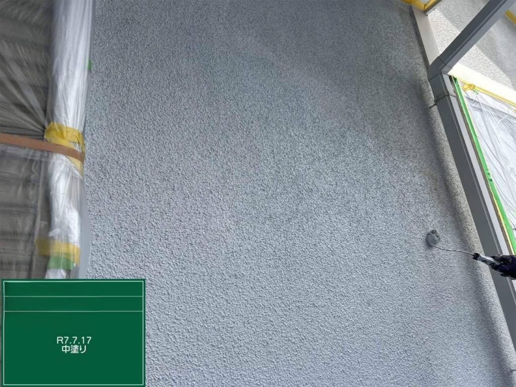 外壁の中塗りになります。白系の色が入って明るく見えます。