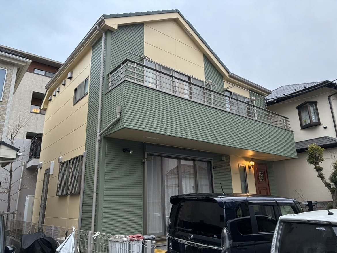 東京都の外壁屋根塗装 N様邸 グリーンの差し色