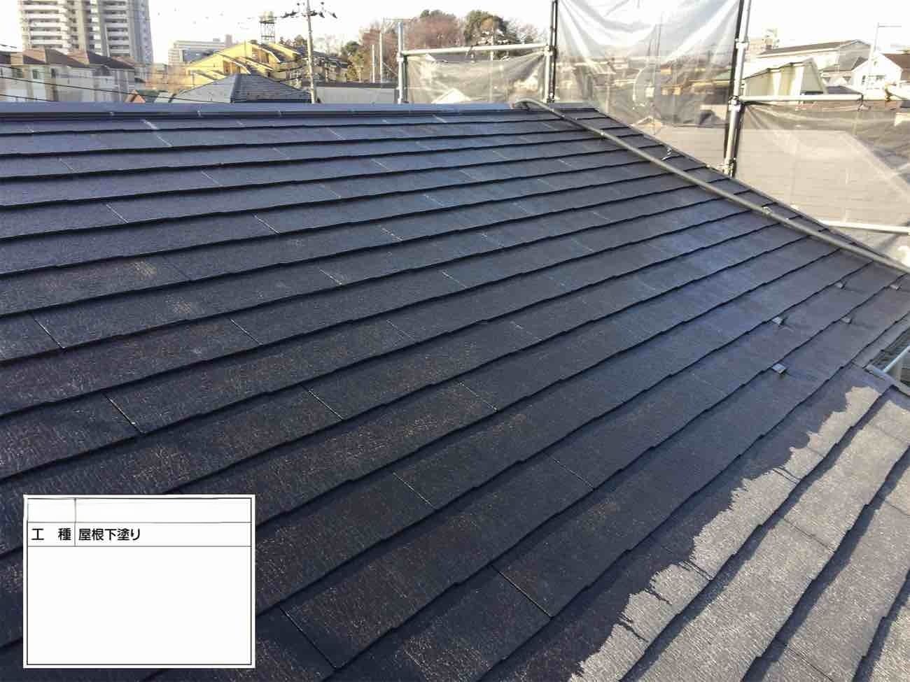 • 外壁の中塗りになります。紺のかっこいい色合いですね。