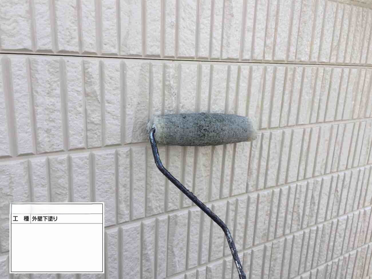 • 外壁の下塗りになります。屋根同様たっぷり塗っていきます。