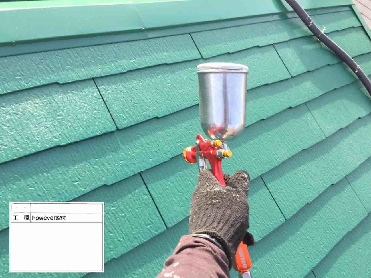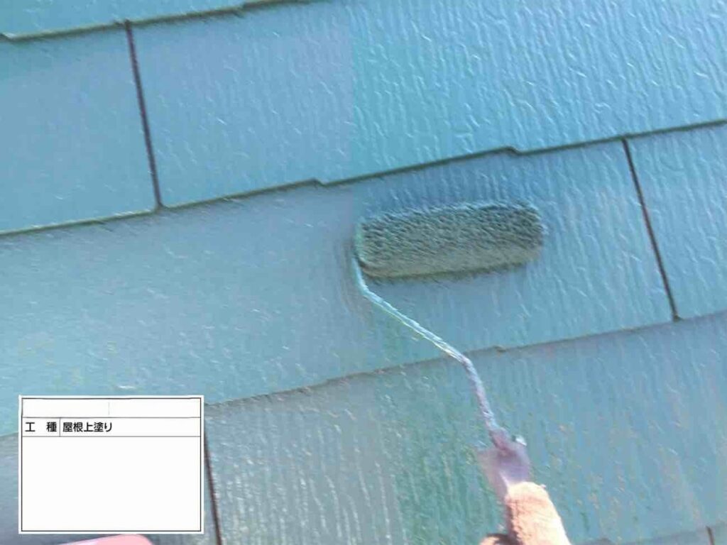 • 屋根の上塗りになります。さらに塗料を重ねていきます。